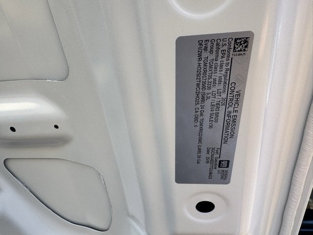 Clean CARFAX. Summit White 2026 Chevrolet Silverado 1500 WT RWD 10-Speed Automatic EcoTec3 5.3L V8 Silverado 1500 WT, 2D Standard Cab, EcoTec3 5.3L V8, 3.5 Monochromatic Display Driver Info Center, 4-Way Manual Driver Seat Adjuster, 40/20/40 Front Split Bench Seat, Black (Semi-Gloss) Front Bumper, Black (Semi-Gloss) Rear Bumper, Bluetooth® For Phone, Electronic Cruise Control, Front Frame-Mounted Black Recovery Hooks, HD Rear Vision Camera, Heated Power-Adjustable Outside Mirrors, Inside Rearview Mirror with Tilt, Locking Tailgate, Manual Tailgate Function with No EZ Lift, Manual Tilt Wheel Steering Column, OnStar Services Capable, Power Front Windows with Driver Express Up/Down, Power Front Windows with Passenger Express Down, Preferred Equipment Group 1WT, Remote Keyless Entry, Rubberized-Vinyl Floor Covering, SiriusXM Delete, Solar Absorbing Tinted Glass, Standard Tailgate, Teen Driver, Tire Pressure Monitoring System, Vinyl Seat Trim, Wheels: 17 x 8 Ultra Silver Painted Steel, Wi-Fi Hot Spot Capable.